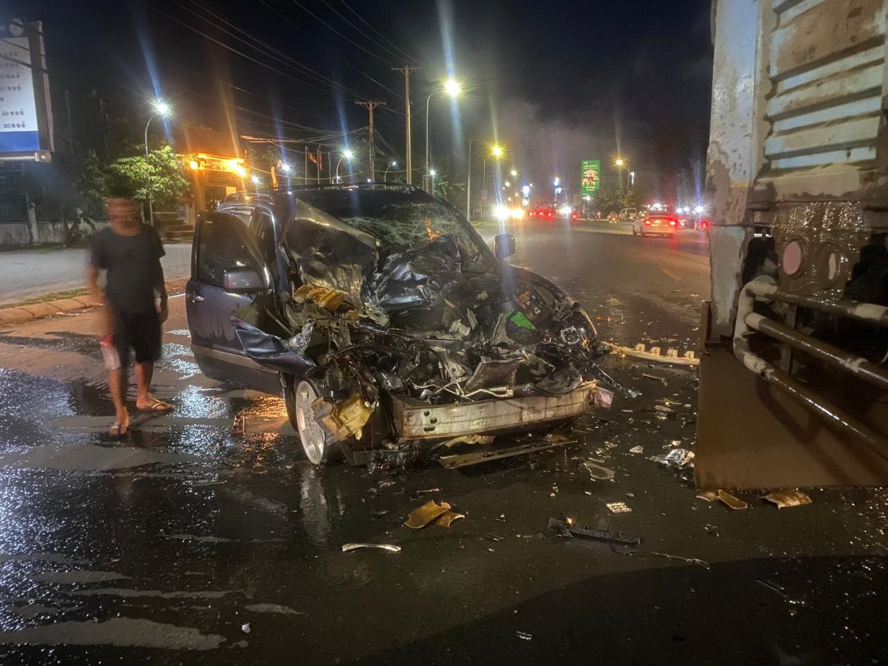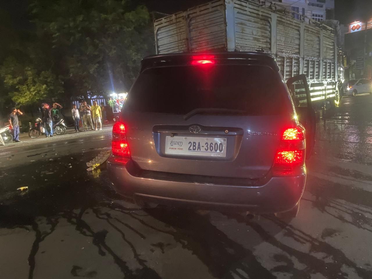 យោងតាមរបាយការណ៍របស់សមត្ថកិច្ចបានឲ្យដឹងថា រថយន្តម៉ាក Highlander ពណ៌ប្រផេះ ពាក់ផ្លាកលេខភ្នំពេញ 2BA 3600 បើកបរដោយឈ្មោះ ឡុង ស៊ុនលីម (ប្រុស, ៣១ឆ្នាំ) រួមដំណើរជាមួយឈ្មោះ ស្មោញ ឡុងហេង (ប្រុស, ៥៦ឆ្នាំ) បានបើកក្នុងទិសដៅពីជើងទៅត្បូង។ ពេលបើកមកដល់ចំណុចកើតហេតុ អ្នកបើកបររថយន្ត Highlander បានបើកវ៉ាជែងរថយន្តមួយគ្រឿងទៀតមកខាងឆ្វេងដៃដោយខ្វះការប្រុងប្រយ័ត្ន ក៏ជ្រុលទៅបុកជាមួយរថយន្តម៉ាក Hyundai ពណ៌លឿង ពាក់ផ្លាកលេខភ្នំពេញ 3C 6330 ដែលកំពុងបើកបរបញ្ច្រាសទិសពីត្បូងទៅជើង។