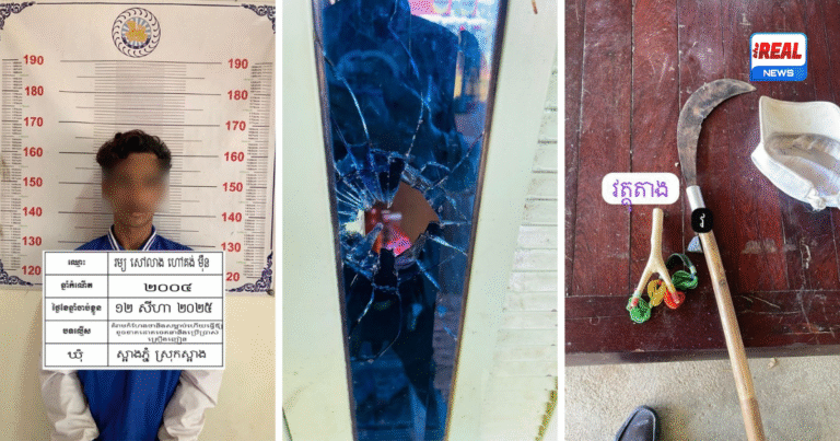 កណ្ដាល៖ យុវជនម្នាក់ត្រូវបានកម្លាំងនគរបាលស្រុកស្អាងឃាត់ខ្លួន បន្ទាប់ពីប្រើប្រាស់គ្រឿងញៀនរួចមានកំហឹង ហើយយកជំពាម ដុំថ្ម បាញ់គប់បំបែកបង្អួចផ្ទះបងស្រីបង្កើតរបស់ខ្លួន ព្រមទាំងយកកណ្ដៀវខ្វាងគំរាមកាប់សម្លាប់ថែមទៀតផង។ ហេតុការណ៍នេះបានកើតឡើងនៅថ្ងៃទី១២ សីហា ២០២៥ វេលាម៉ោង ៩:០០នាទីព្រឹក នៅភូមិវាល ឃុំស្អាងភ្នំ ស្រុកស្អាង។