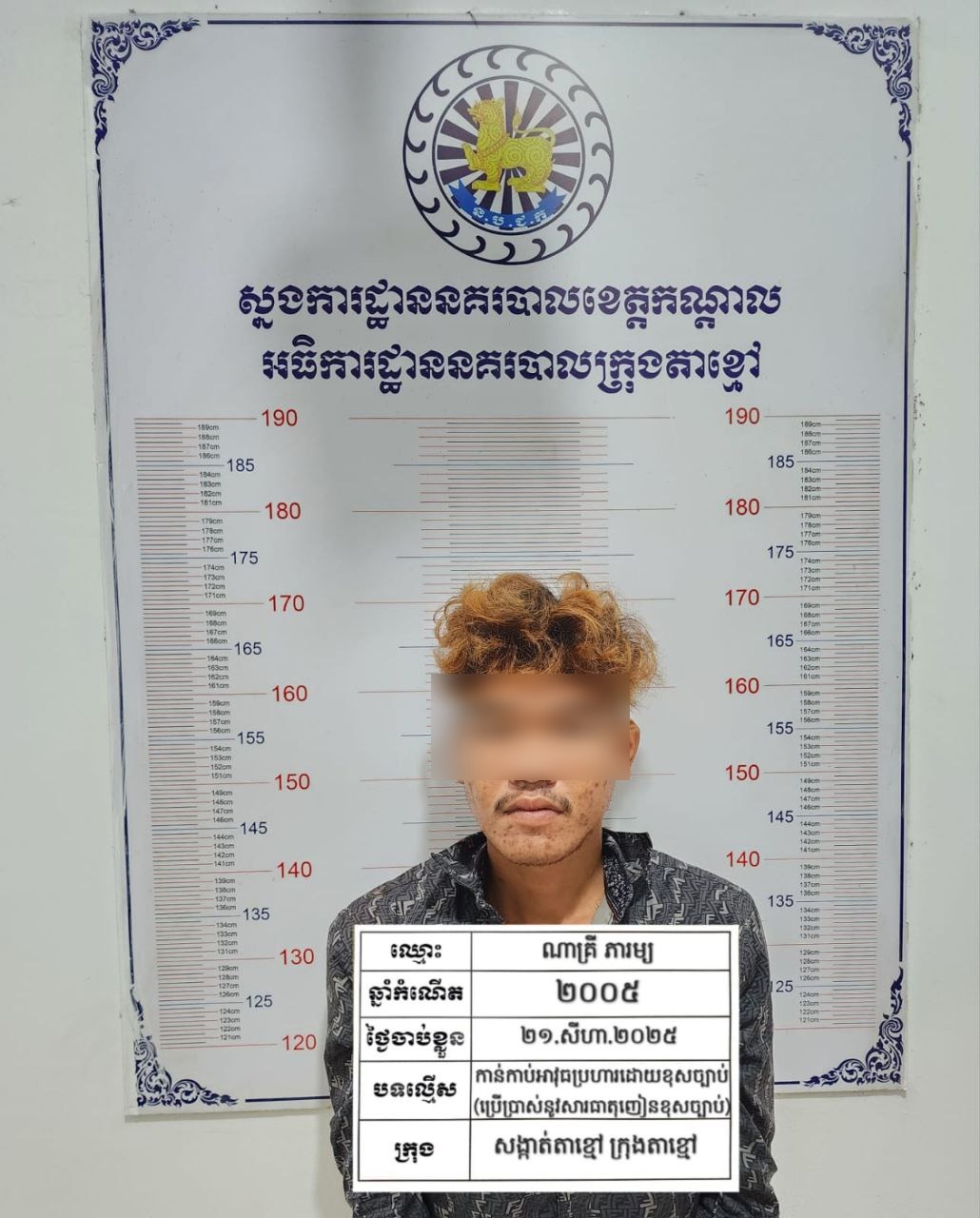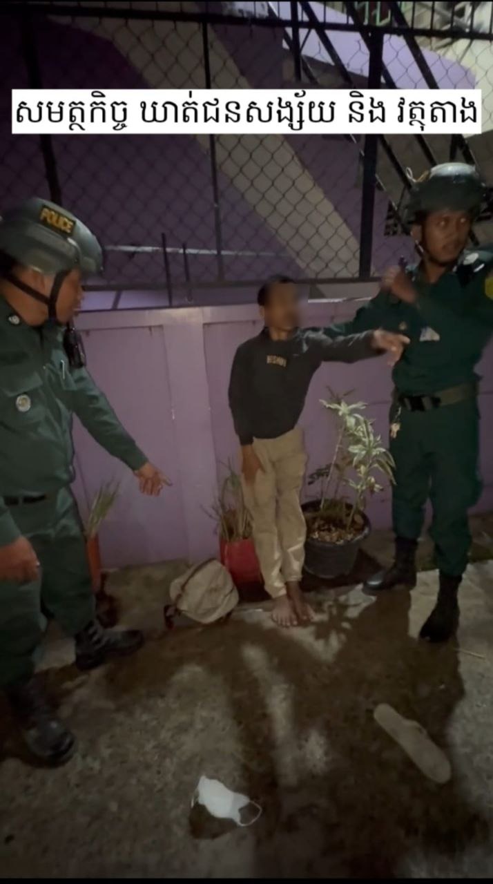 កណ្ដាល៖ ប្រជាពលរដ្ឋក្នុងក្រុងតាខ្មៅមានការសាទរយ៉ាងខ្លាំង ខណៈដែលកម្លាំងនគរបាលបានឃាត់ខ្លួនជនសង្ស័យ ២នាក់បានទាន់ពេល មុនពួកគេធ្វើសកម្មភាពលួច។ ជនសង្ស័យទាំងពីររូបត្រូវបានរកឃើញថាមានកាន់កាប់អាវុធប្រហារ (កាំបិតបុ័ងតោ) និងឧបករណ៍សម្រាប់ឆ្កឹះសោដោយខុសច្បាប់ ហើយពួកគេក៏មានសារធាតុញៀនក្នុងខ្លួនផងដែរ។ ហេតុការណ៍នេះបានកើតឡើងនៅថ្ងៃទី២២ សីហា ២០២៥ វេលាម៉ោង ២:៣០នាទីរំលងអធ្រាត្រ នៅភូមិព្រែកសំរោង សង្កាត់តាខ្មៅ ក្រុងតាខ្មៅ។