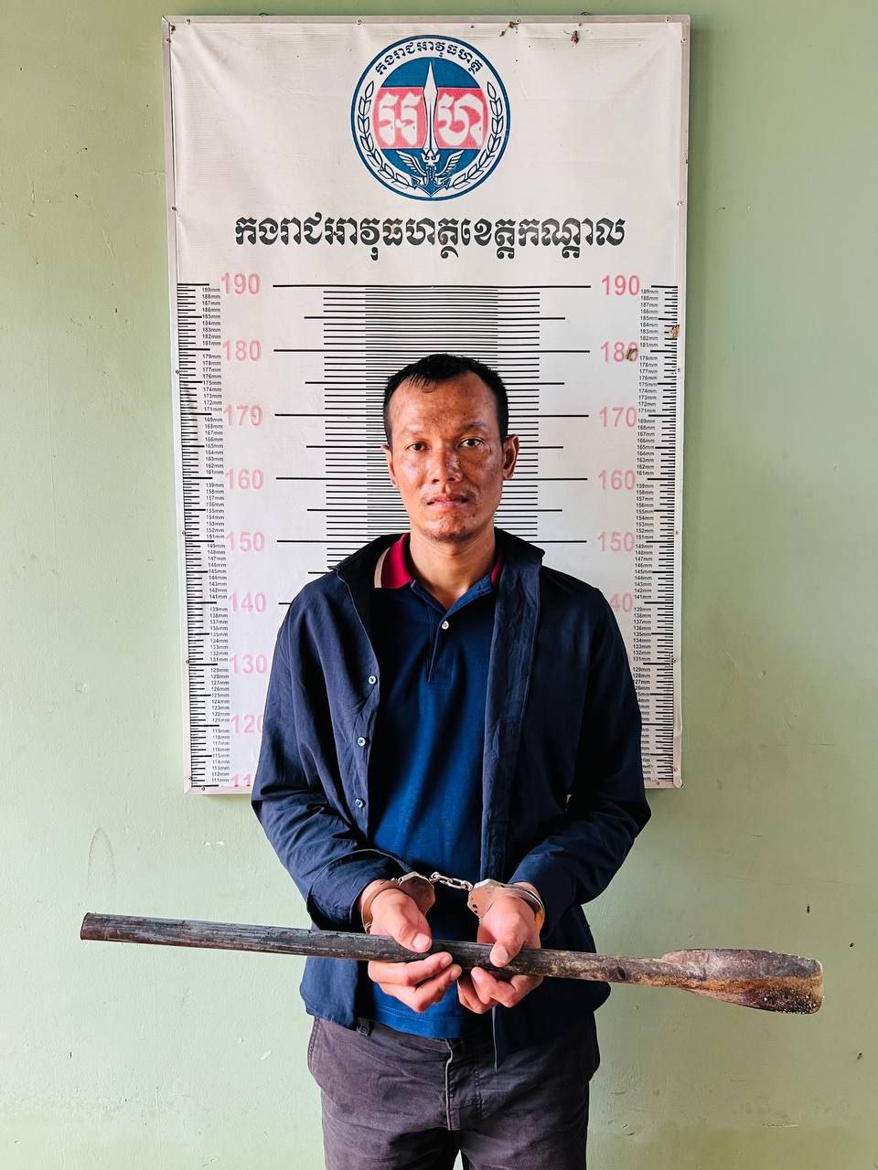កណ្ដាល៖ កម្លាំងកងរាជអាវុធហត្ថស្រុកកណ្តាលស្ទឹង បានឃាត់ខ្លួនបុរសដៃដល់ម្នាក់ បន្ទាប់ពីធ្វើសកម្មភាពយ៉ាងឃោរឃៅយកចបជីកវាយទៅលើប្តីប្រពន្ធមួយគូ បណ្ដាលឲ្យស្ត្រីជាប្រពន្ធស្លាប់ និងបុរសជាប្តីរងរបួសធ្ងន់ ហើយបានរត់គេចខ្លួនអស់រយៈពេលជាង ៤ថ្ងៃ។ ហេតុការណ៍នេះបានកើតឡើងកាលពីយប់ថ្ងៃទី២០ សីហា ២០២៥ នៅចំណុចផ្លូវលំស្ថិតក្នុងភូមិត្រពាំងស្វា ឃុំទ្រា ស្រុកកណ្ដាលស្ទឹង។