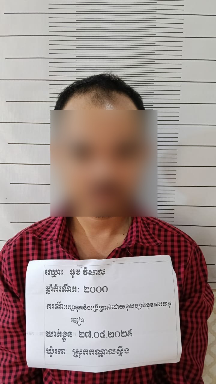 កណ្ដាល៖ យុវជន ២នាក់ត្រូវបានកម្លាំងនគរបាលស្រុកកណ្តាលស្ទឹងឃាត់ខ្លួន បន្ទាប់ពីម្នាក់ក្នុងចំណោមពួកគេបានព្យាយាមរត់គេចខ្លួនពេលសមត្ថកិច្ចចុះល្បាត ហើយត្រូវរកឃើញមានគ្រឿងញៀននៅក្នុងហោប៉ៅ។ ជនសង្ស័យទាំងពីរនាក់សុទ្ធតែមានសារធាតុញៀនក្នុងខ្លួន។ ហេតុការណ៍នេះបានកើតឡើងនៅថ្ងៃទី២៦ សីហា ២០២៥ វេលាម៉ោង ២២:៣០នាទី នៅលើផ្លូវក្នុងភូមិរកា ឃុំរកា ស្រុកកណ្តាលស្ទឹង។