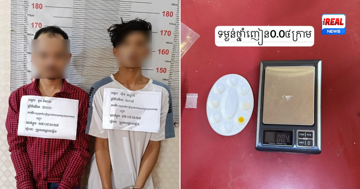 ប្រភពពីសមត្ថកិច្ចបានឲ្យដឹងថា ជនសង្ស័យដែលឃាត់ខ្លួនបានមានឈ្មោះ ស៊ីម សប្តាហ៍ (ប្រុស, ២០ឆ្នាំ) និងឈ្មោះ ធុច វិសាល (ប្រុស, ២៥ឆ្នាំ) ដែលពួកគេទាំងពីរនាក់ជាកម្មកររោងចក្រ និងមានទីលំនៅក្នុងភូមិឃុំកើតហេតុ។ កម្លាំងសមត្ថកិច្ចបានដកហូតវត្ថុតាងមានថ្នាំញៀនចំនួន ១កញ្ចប់តូច ដែលមានទម្ងន់ ០,០៤ក្រាម និងឧបករណ៍ប្រើប្រាស់មួយចំនួន។