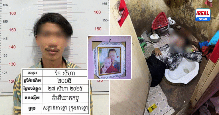 កណ្ដាល៖ ករណីឃាតកម្មដ៏កម្រមួយបានកើតឡើងនៅក្រុងតាខ្មៅ ខណៈដែលបុរសជាប្ដីបានច្របាច់កប្រពន្ធរបស់ខ្លួនរហូតដល់ស្លាប់ ហើយបានចូលខ្លួនទៅសារភាពប្រាប់សមត្ថកិច្ច។ ហេតុការណ៍នេះបានកើតឡើងនៅថ្ងៃទី២៧ សីហា ២០២៥ វេលាម៉ោង ១៦:២៦នាទី នៅបន្ទប់ជួលមួយកន្លែងក្នុងភូមិតាខ្មៅ៣ សង្កាត់តាខ្មៅ ក្រុងតាខ្មៅ។