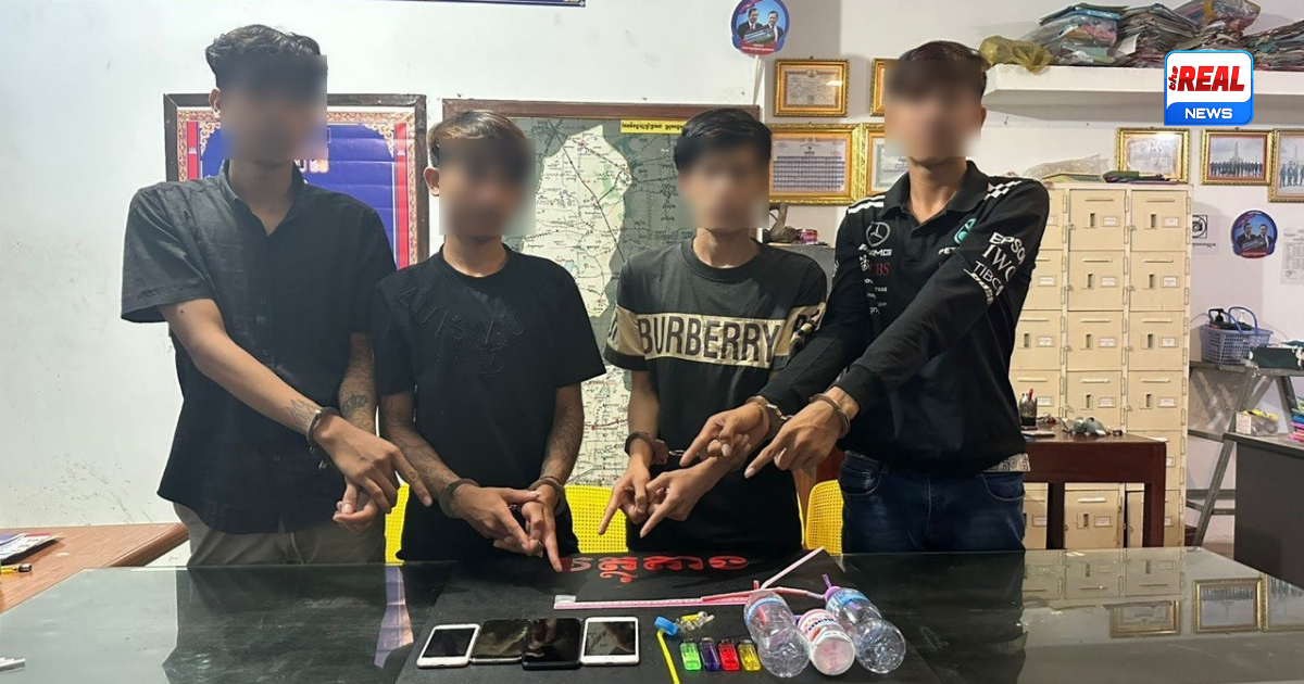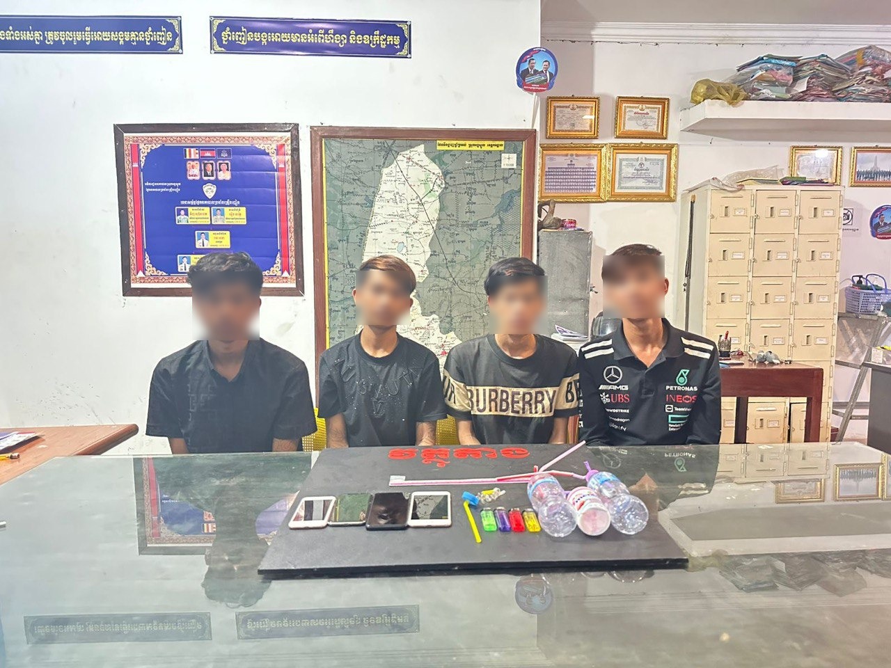 ត្រួតពិនិត្យផ្ទះជួល! សមត្ថកិច្ចស្រុកអង្គស្នួលឃាត់ខ្លួនយុវជន ៤នាក់ រឹបអូសបានថ្នាំញៀន និងសម្ភារៈប្រើប្រាស់
