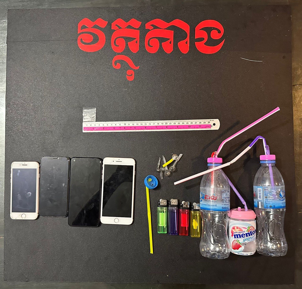 យោងតាមរបាយការណ៍បានឲ្យដឹងថា ជនសង្ស័យទាំង ៤នាក់ដែលត្រូវបានឃាត់ខ្លួនមានឈ្មោះ ឡន ម៉េងលាង (ប្រុស, ២១ឆ្នាំ), ឈ្មោះ រ៉ន រាជ (ប្រុស, ១៨ឆ្នាំ), ឈ្មោះ ហុង លីហ័ន (ប្រុស, ២០ឆ្នាំ) និងឈ្មោះ អ៊ុត នីសា (ប្រុស, ១៨ឆ្នាំ)។ កម្លាំងសមត្ថកិច្ចបានដកហូតវត្ថុតាងមានម្សៅក្រាមពណ៌សថ្លាសង្ស័យជាសារធាតុញៀនប្រភេទម៉ាទឹកកកចំនួន ១កញ្ចប់តូច ដែលមានទម្ងន់ ០,១៥ក្រាម, ទូរស័ព្ទដៃ ៤គ្រឿង និងឧបករណ៍ប្រើប្រាស់គ្រឿងញៀនមួយចំនួន។