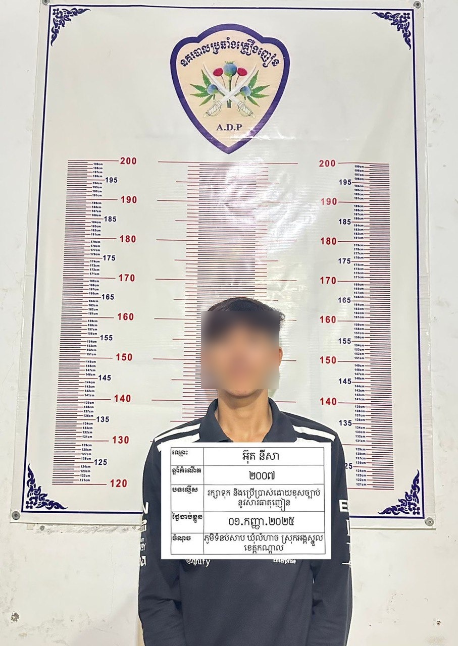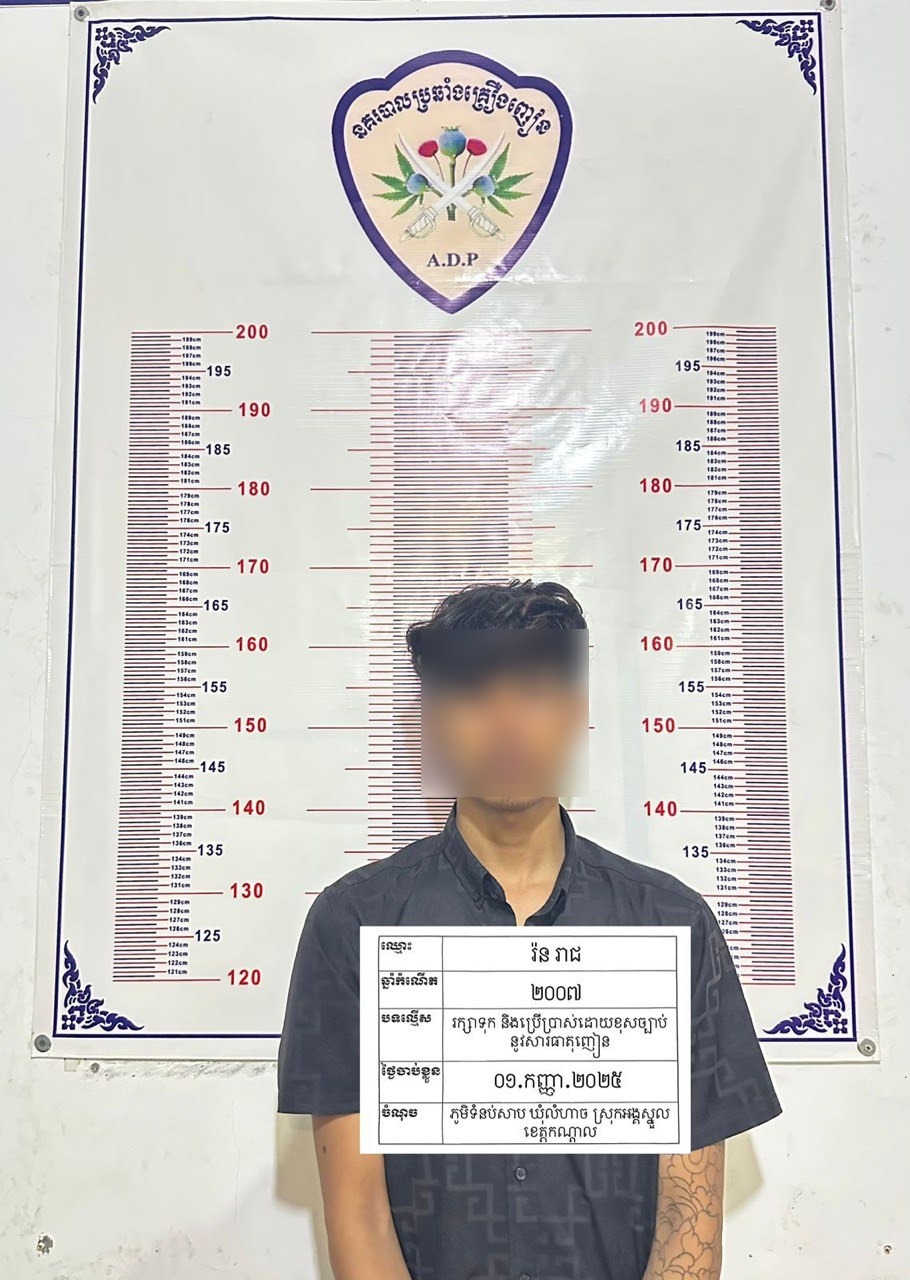 កណ្ដាល៖ យុវជនចំនួន ៤នាក់ត្រូវបានកម្លាំងសមត្ថកិច្ចស្រុកអង្គស្នួលឃាត់ខ្លួន បន្ទាប់ពីចុះធ្វើរដ្ឋបាលត្រួតពិនិត្យផ្ទះជួល ហើយរកឃើញថាពួកគេកំពុងប្រមូលផ្ដុំគ្នារក្សាទុក និងប្រើប្រាស់គ្រឿងញៀនខុសច្បាប់។ ជនសង្ស័យទាំងអស់សុទ្ធតែមានសារធាតុញៀនក្នុងខ្លួន។ ហេតុការណ៍នេះបានកើតឡើងនៅថ្ងៃទី១ ខែកញ្ញា ២០២៥ វេលាម៉ោង ១៥:០៥នាទី នៅផ្ទះជួលក្នុងភូមិទំនប់សាប ឃុំលំហាច ស្រុកអង្គស្នួល។