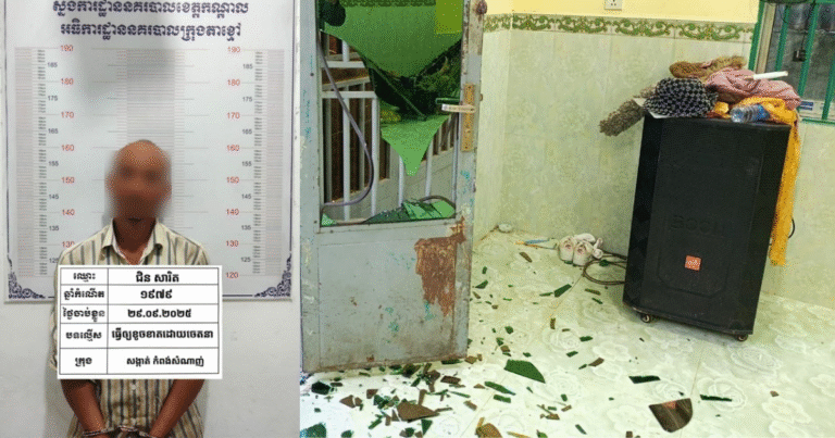 បុរសម្នាក់ដែលតែងតែប្រើអំពើហិង្សាចំពោះប្រពន្ធកូននៅពេលស្រវឹង ពេលនេះត្រូវបានសមត្ថកិច្ចនគរបាលក្រុងតាខ្មៅឃាត់ខ្លួនបានហើយ។ ហេតុការណ៍នេះបានកើតឡើងនៅល្ងាចថ្ងៃទី២៩ កញ្ញា ២០២៥ ស្ថិតនៅភូមិកំពង់សំណាញ់១ សង្កាត់កំពង់សំណាញ់ ក្រុងតាខ្មៅ ខេត្តកណ្ដាល។