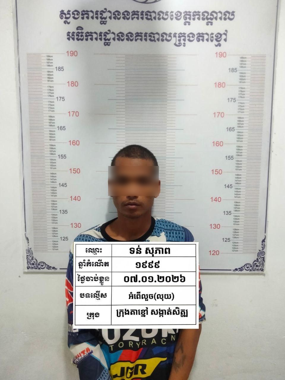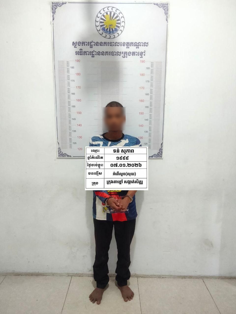 ជនសង្ស័យម្នាក់ដែលញៀនថ្នាំបានឆ្លៀតឱកាសម្ចាស់ឱសថស្ថានរវល់យកកូនទៅឲ្យមេដោះនៅក្រោយផ្ទះ ចូលលួចលុយសម្រាប់អាប់ភ្ញៀវបានសម្រេច ប៉ុន្តែគេចខ្លួនមិនទាន់ផុតផង ក៏ត្រូវម្ចាស់មកទាន់ចាប់ឃាត់ខ្លួនប្រគល់ឲ្យសមត្ថកិច្ច។ ហេតុការណ៍នេះបានកើតឡើងនៅវេលាម៉ោង ១៩និង៣០នាទី ថ្ងៃទី៧ មករា ២០២៦ នៅចំណុចផ្ទះលក់ថ្នាំពេទ្យមួយកន្លែង ស្ថិតក្នុងភូមិសិត្បូ សង្កាត់សិត្បូ ក្រុងតាខ្មៅ ខេត្តកណ្តាល។