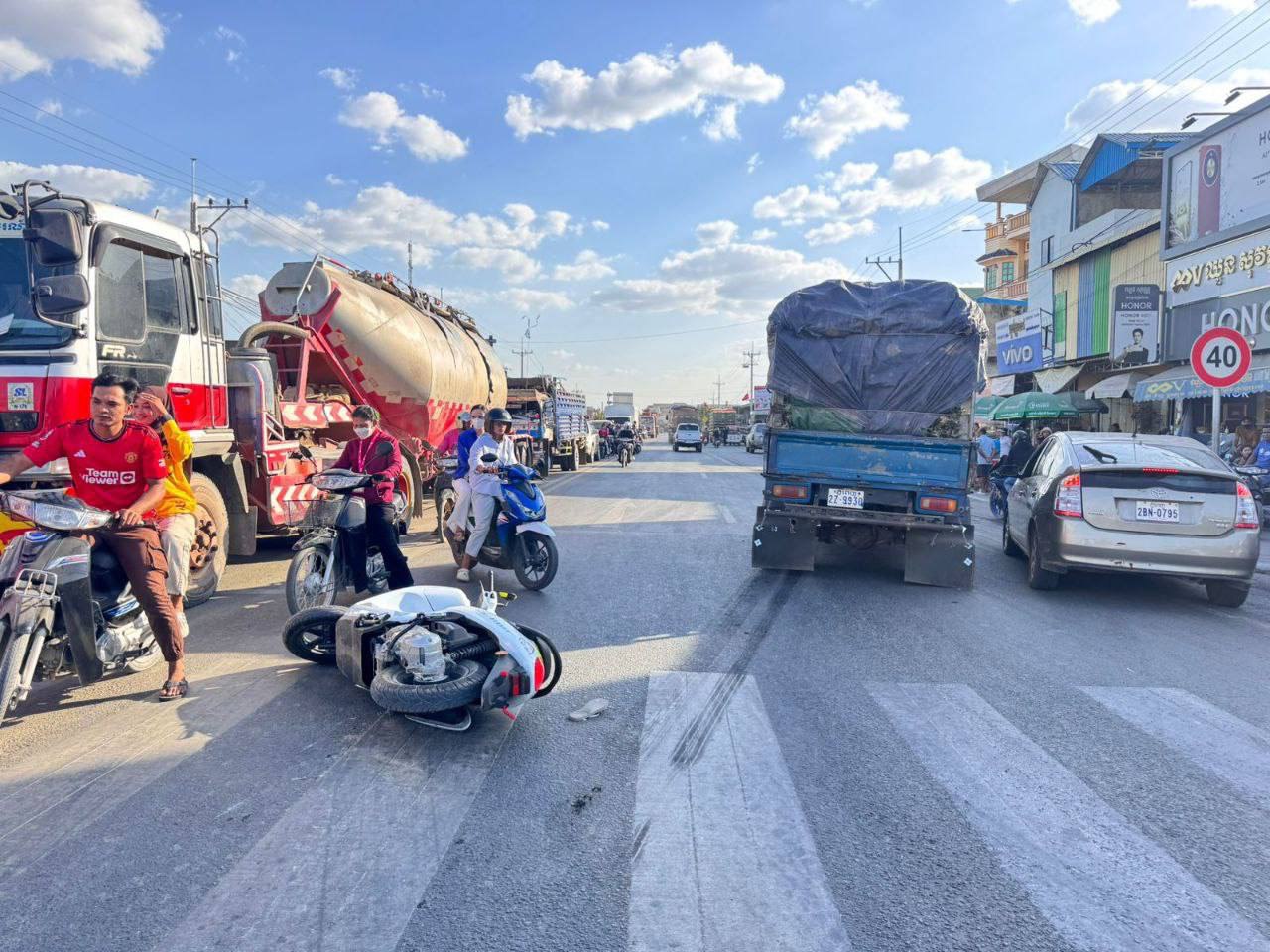 Home » ជិះម៉ូតូបញ្ច្រាសផ្លូវថែមទាំងល្មើសភ្លើងស្តុប ត្រូវរថយន្តបុកកិនស្លាប់ម្នាក់ និងរបួសស្រាលម្នាក់