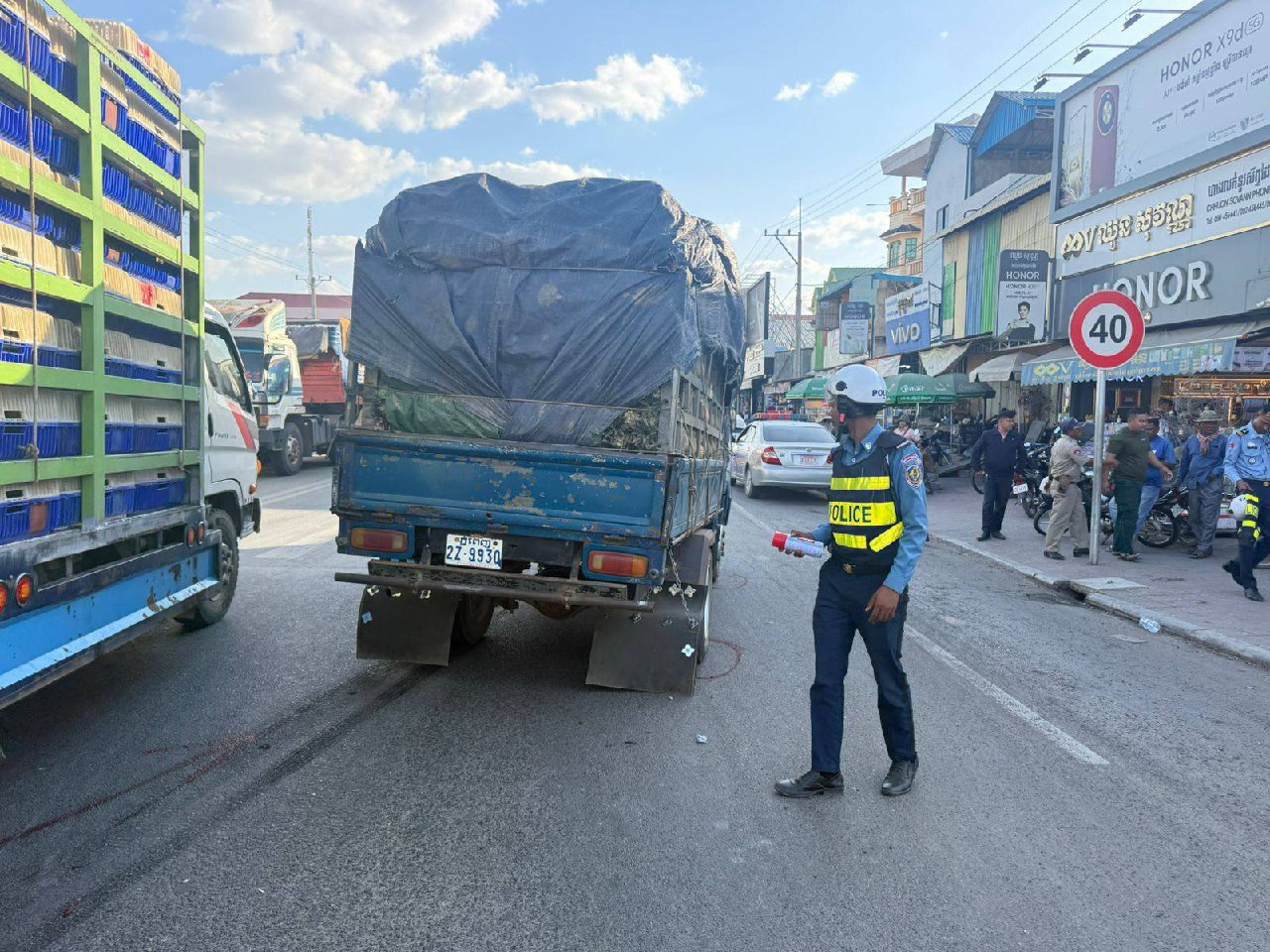 លោកអធិការបានបញ្ជាក់ថា នៅមុនពេលកើតហេតុ រថយន្តបានធ្វើដំណើរពីទិសខាងជើងទៅត្បូង (ឧដុង្គ-កំពត) ដោយឆ្លងស្តុបក្នុងសិទ្ធិអទិភាព (ភ្លើងពណ៌បៃតង)។ លុះមកដល់ចំណុចកើតហេតុ ស្រាប់តែមានម៉ូតូ ១គ្រឿង ម៉ាក Honda Scoopy ពណ៌ស គ្មានផ្លាកលេខ ជិះគ្នា ២នាក់ ធ្វើដំណើរពីទិសខាងកើតទៅលិច (ភ្នំពេញ-កំពង់ស្ពឺ) ដោយបើកបរលើផ្លូវរណបបញ្ច្រាសទិសចរាចរណ៍។ ពេលមកដល់ស្តុប ម៉ូតូបានបត់ឆ្វេងឆ្លងចូលផ្លូវជាតិលេខ៤១ ដោយល្មើសភ្លើងស្តុបពណ៌ក្រហម កាត់មុខរថយន្ត បណ្ដាលឲ្យរថយន្តជាន់ហ្វ្រាំងមិនទាន់ក៏បុក និងអូសម៉ូតូ ធ្វើឲ្យអ្នករួមដំណើរធ្លាក់ពីលើម៉ូតូត្រូវរថយន្តកិនរងរបួសធ្ងន់ និងបានស្លាប់ពេលបញ្ជូនដល់មន្ទីរពេទ្យ។