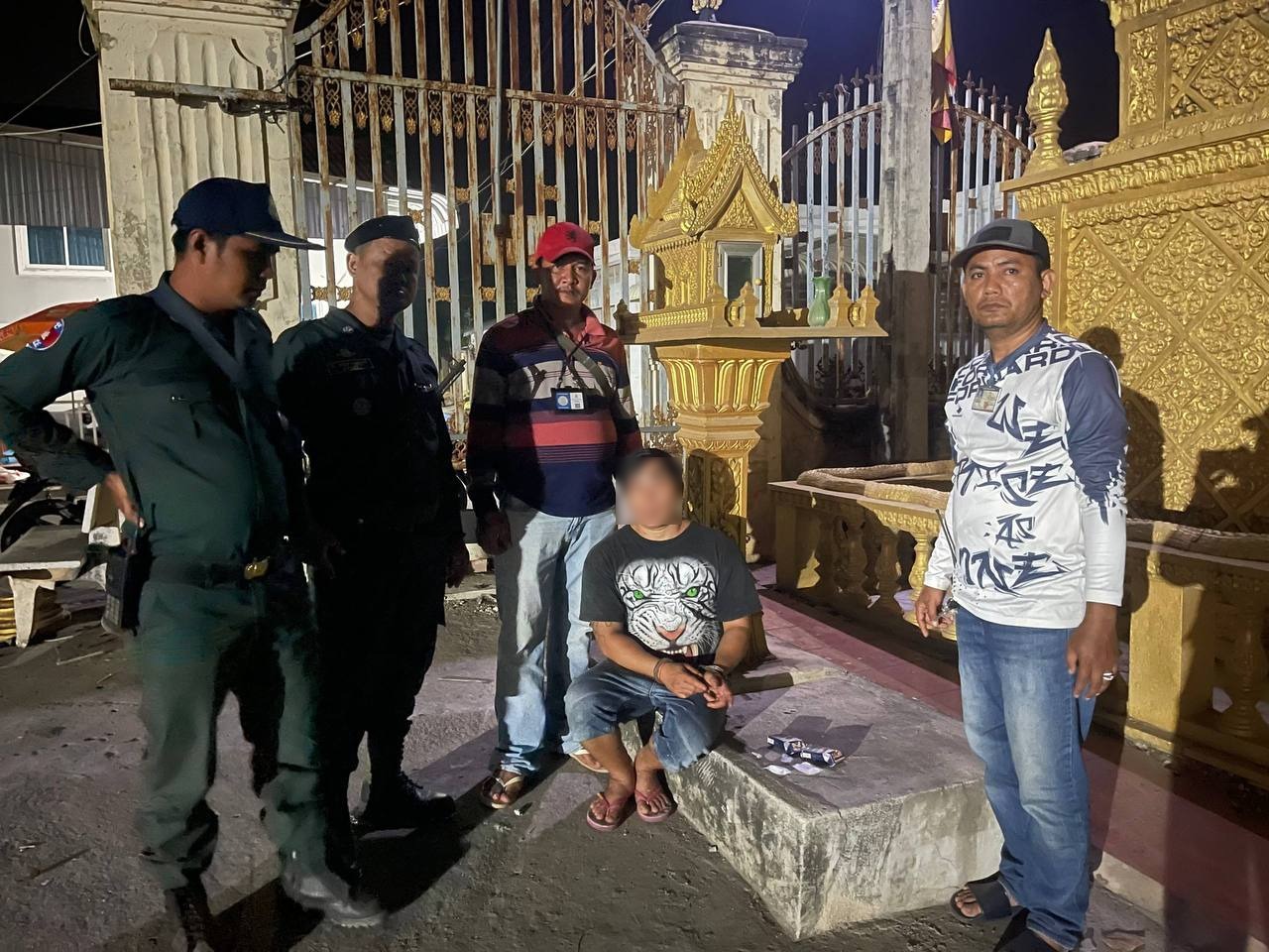 លោកអធិការបានឲ្យដឹងទៀតថា នៅមុនពេលកើតហេតុ កម្លាំងប៉ុស្តិ៍ភូមិធំ និងកម្លាំងផ្នែកប្រឆាំងគ្រឿងញៀន បានចេញល្បាតក្នុងភូមិសាស្រ្តឃុំភូមិធំ។ លុះមកដល់ចំណុចក្បែររបងវត្តកៀនស្វាយក្រៅ ក៏បានប្រទះឃើញជនសង្ស័យឈ្មោះ អ៊ិន ថាន់ និងឈ្មោះ ឈុន សុខាលុច្ស កំពុងអង្គុយនៅទីនោះគួរឲ្យសង្ស័យ។ ភ្លាមនោះ កម្លាំងសមត្ថកិច្ចក៏បានចុះទៅឃាត់ខ្លួនឈ្មោះ អ៊ិន ថាន់ និងត្រួតពិនិត្យរកឃើញថ្នាំញៀន ៣កញ្ចប់ និងកែវសម្រាប់ជក់ថ្នាំ ១ ចំណែកឯឈ្មោះ ឈុន សុខាលុច្ស បានរត់គេចខ្លួនបាត់ស្រមោល។